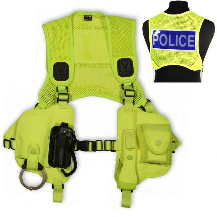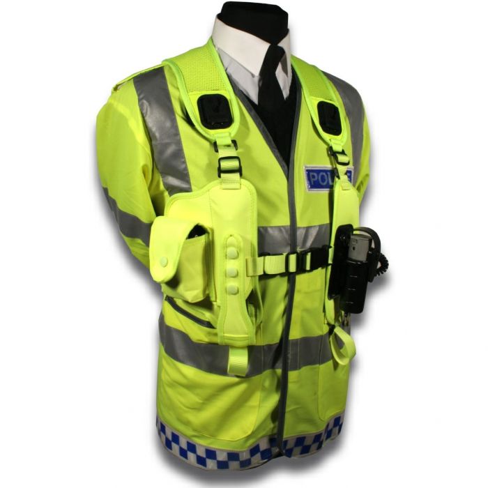 HV-DU3T-CS Klick Fast: and mini police vest with klick fast CS holder based on the same design as the DU3T-CS but in hi-visibilty yellow.